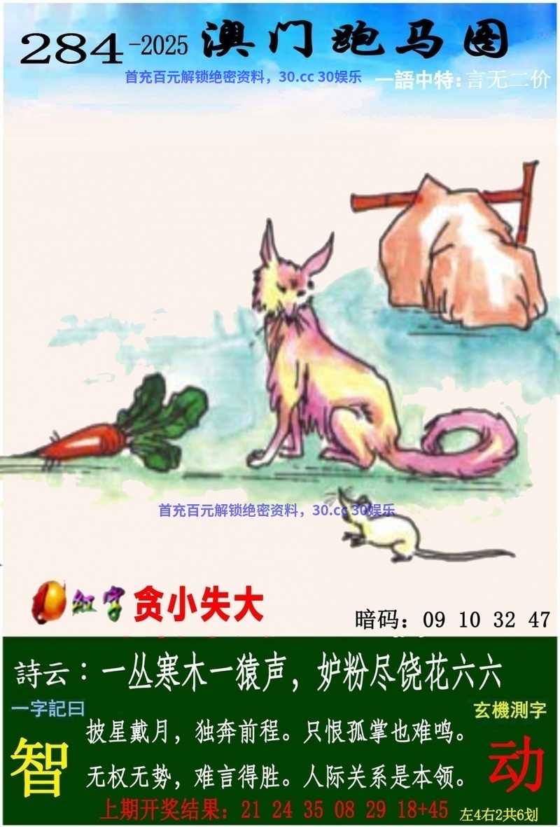 284期一字記曰:【智】披星戴月,独奔前程,只恨孤掌也难鸣。无权无势,难言得胜,人际关系是本领。《动》